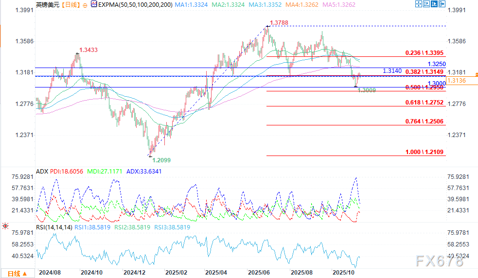 过去几日,英镑/美元货币对出现反弹,从上周末1.3009的低点攀升至1.3190的高位,这是自10月30日以来的最高水平。英镑/美元对比9月高点下跌近4%。